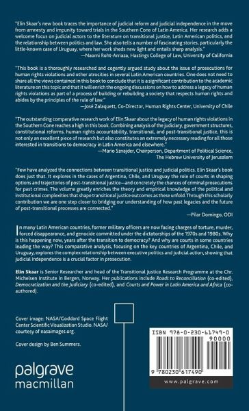 "Elin Skaar's new book traces the importance of judicial reform and judicial independence in the move from amnesty and impunity towards trials in the Southern Cone of Latin America. She contests the idea that the insistence on justice by courts in Chile, Argentina and Uruguay is simply a matter of implementing executive preferences. Rather, she finds that judicial independence and arrangements played a key role. Her research adds a welcome focus on judicial actors to the literature on transitional justice, Latin American politics, and the relationship between politics and law. She also tells a number of fascinating stories, particularly the little-known case of Uruguay, where her work sheds new light andentails sharp analysis." - Naomi Roht-Arriaza, Hastings College of Law, University of California