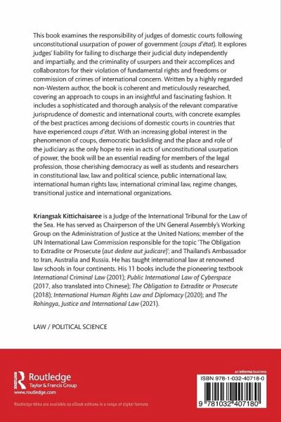 This book examines the responsibility of judges of domestic courts following unconstitutional usurpation of power of government (coups d'état). It explores judges' liability for failing to discharge their judicial duty independently and impartially, and the criminality of usurpers and their accomplices and collaborators for their violation of fundamental rights and freedoms or commission of crimes of international concern. Written by a highly regarded non-Western author, the book is coherent and meticulously researched, covering an approach to coups in an insightful and fascinating fashion. It includes a sophisticated and thorough analysis of the relevant comparative jurisprudence of domestic and international courts, with concrete examples of the best practices among decisions of domestic courts in countries that have experienced coups d'état. With an increasing global interest in the phenomenon of coups, democratic backsliding and the place and role of the judiciary as the only hope to rein in acts of unconstitutional usurpation of power, the book will be essential reading for members of the legal profession, those cherishing democracy as well as students and researchers in constitutional law, law and political science, public international law, international human rights law, international criminal law, regime changes, transitional justice and international organizations.