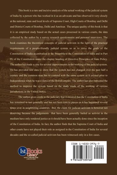 This is the first authentic and critical study of Indian judiciary as an arm of a democratic government. It relies on several court cases and survey research. It suggests that judiciary become proactive and people-friendly to fulfill people's constitutional aspirations.