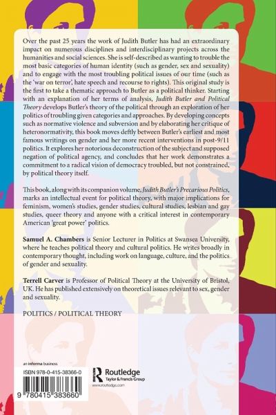 Samuel A. Chambers is Senior Lecturer in Politics at Swansea University, where he teaches political theory and cultural politics. He writes broadly in contemporary thought, including work on language, culture, and the politics of gender and sexuality. Terrell Carver is Professor of Political Theory at the University of Bristol, UK. He has published extensively on theoretical issues relevant to sex, gender and sexuality.