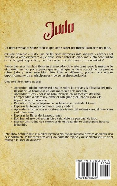 Un libro revelador sobre todo lo que debe saber del maravilloso arte del judo. ¿Quiere dominar el judo, una de las artes marciales más antiguas y eficaces del mundo? ¿Cómo empezar? Qué debe saber antes de empezar? ¿Está confundido con el lenguaje específico y no sabe cómo proceder con su entrenamiento? Puede que haya muchos libros en el mercado sobre este tema, pero la mayoría de ellos están escritos por expertos que asumen que ya tiene conocimientos previos sobre judo y artes marciales. Este libro es diferente, porque está escrito específicamente para principiantes y personas sin experiencia. Con este libro, usted podrá:Aprender todo lo que necesita saber sobre las reglas y la filosofía del judo. Descubrir los beneficios de este magnífico arte marcial. Aprender trucos y consejos para iniciarse en las técnicas del judo. Comprender la diferencia entre el Kata judo y el Randori judo y la importancia de cada uno. Descubrir cómo protegerse de las lesiones a través del Ukemi. Explorar las técnicas de manos, pies y caderas. Aprender a luchar con sus fortalezas a través del sutemi waza, el osae waza y el shime waza. Explorar las llaves del kansetsu waza. Dominar el arte del goshin jutsu kata, defensa personal de judo. Diseñar una rutina con ejercicios de entrenamiento diarios para hacerse imbatible. Este libro permite que cualquier persona sin conocimientos previos adquiera una base sólida en los fundamentos del judo bastante rápido y así se sienta segura de sí misma a la hora de avanzar.
