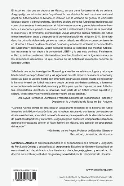 El futbol es más que un deporte en México, es una parte fundamental de su cultura. Juego peligroso: historias de lucha y diversidad en el futbol femenil mexicano analiza el papel del futbol femenil en México en relación con la violencia de género, la visibilidad lésbica y queer, y el biculturalismo. Este libro explora cómo las futbolistas mexicanas, así como otras mujeres involucradas en el futbol-entrenadoras y periodistas-han enfrentado y a menudo superado la represión social e institucional a través de la sororidad, la resiliencia y el feminismo interseccional. Juego peligroso analiza historias del futbol femenil mexicano, antes y después de la profesionalización de la liga en 2017. Este libro describe cómo la violencia de género se ha normalizado en México y consecuentemente en el futbol a través de diferentes tipos de acoso y conductas violentas experimentadas por jugadoras y periodistas. Juego peligroso resalta la visibilidad que muchas futbolistas mexicanas le han dadoa la comunidad LGBT+ y lo que esto conlleva. Finalmente, el libro examina cuestiones relacionadas con el biculturalismo en la liga mexicana y en las selecciones nacionales, ya que muchas de las futbolistas mexicanas nacieron en Estados Unidos.