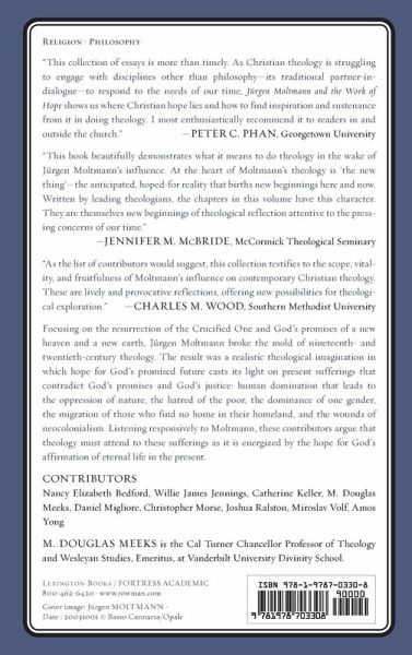 Preface -M. Douglas Meeks 1. Accounting for the Hope: How Moltmann's Theology Provokes a Rehearing of the Gospel, the Adventus/Futurum Distinction a Half Century Later - Christopher Morse 2. Expectation - Nancy Elizabeth Bedford 3. Christus Semper Maior: Reflections on Cosmic Christology - Daniel Migliore 4. Time, Eternity, and the Prospects for Care - Miroslav Volf 5. The Coming Spirit of Theology: Moltmann, Pneumatology, and Trinitarian Eschatology for the Third Millennium - Amos Yong 6. Real Possibilities: Moltmann's Hope, Now - Catherine Keller 7. Jürgen Moltmann and the Quest for a Listening Subject - Willie James Jennings 8. Economy and the Future of Christian Theology - M. Douglas Meeks 9. An Inter-religious Kairos Moment: Christian-Muslim Relations in an Age of Migration - Joshua Ralston