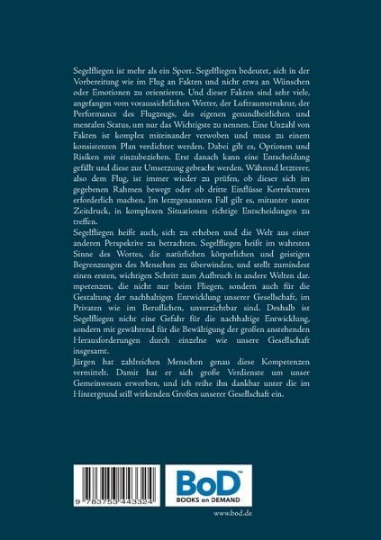 Segelfliegen ist mehr als ein Sport. Segelfliegen bedeutet, sich in der Vorbereitung wie im Flug an Fakten und nicht etwa an Wünschen oder Emotionen zu orientieren. Und dieser Fakten sind sehr viele, angefangen vom voraussichtlichen Wetter, der Luftraumstruktur, der Performance des Flugzeugs, des eigenen gesundheitlichen und mentalen Status, um nur das Wichtigste zu nennen. Eine Unzahl von Fakten ist komplex miteinander verwoben und muss zu einem konsistenten Plan verdichtet werden. Dabei gilt es, Optionen und Risiken mit einzubeziehen. Erst danach kann eine Entscheidung gefällt und diese zur Umsetzung gebracht werden. Während letzterer, also dem Flug, ist immer wieder zu prüfen, ob dieser sich im gegebenen Rahmen bewegt oder ob dritte Einflüsse Korrekturen erforderlich machen. Im letztgenannten Fall gilt es, mitunter unter Zeitdruck, in komplexen Situationen richtige Entscheidungen zu treffen.Segelfliegen heißt auch, sich zu erheben und die Welt aus einer anderen Perspektive zu betrachten. Segelfliegen heißt im wahrsten Sinne des Wortes, die natürlichen körperlichen und geistigen Begrenzungen des Menschen zu überwinden, und stellt zumindest einen ersten, wichtigen Schritt zum Aufbruch in andere Welten dar. Kompetenzen, die nicht nur beim Fliegen, sondern auch für die Gestaltung der nachhaltigen Entwicklung unserer Gesellschaft, im Privaten wie im Beruflichen, unverzichtbar sind. Deshalb ist Segelfliegen nicht eine Gefahr für die nachhaltige Entwicklung, sondern mit gewährend für die Bewältigung der großen anstehenden Herausforderungen durch einzelne wie unsere Gesellschaft insgesamt.Jürgen hat zahlreichen Menschen genau diese Kompetenzen vermittelt. Damit hat er sich große Verdienste um unser Gemeinwesen erworben, und ich reihe ihn dankbar unter die im Hintergrund still wirkenden Großen unserer Gesellschaft ein.