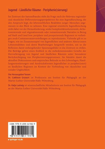 Im Zentrum des Sammelbandes steht die Frage nach der Relevanz regionaler und räumlicher Differenzierungsperspektiven für eine Jugendforschung, die den Anspruch hegt, die lebensweltlichen Realitäten junger Menschen angemessen in den Blick zu nehmen. Eine regional orientierte Jugendforschung steht dabei vor der Herausforderung, weder komplexitätsreduzierende, dichotomisierende und stigmatisierende oder romantisierende Narrative in Bezug auf Stadt und Land bzw. periphere und prosperierende Regionen zu verfestigen noch Containerraumvorstellungen zu reproduzieren. Vielmehr gilt es zu fragen, wie im Zusammenspiel von Jugendlichen und anderen Akteur:innen Lebensrealitäten und deren Bearbeitungen hergestellt werden, um so die Reflexion damit einhergehender Spannungsfelder in das Zentrum zu stellen. Die Beiträge geben einen Einblick in die mehrdimensionalen Gewebe der Hervorbringung von Jugend und ländlichen Räumen unter besonderer Berücksichtigung von Peripherisierungsprozessen. Sie bündeln damit die aktuellen Diskussionen und empirischen Befunde zu den Lebenslagen, Handlungsorientierungen und Ausdrucksformen Jugendlicher in peripher(isiert)en ländlichen Regionen im Kontext der Verbindung von räumlicher und sozialer Ungleichheit.