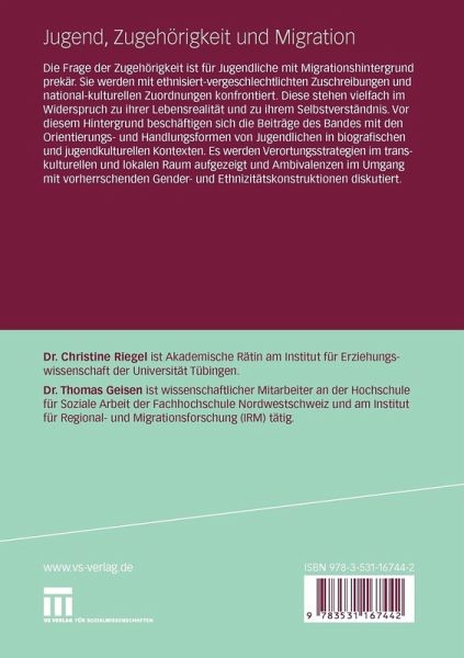 Die Frage der Zugehörigkeit ist für Jugendliche mit Migrationshintergrund prekär. Sie werden mit ethnisiert-vergeschlechtlichten Zuschreibungen und nationalen Zuordnungen konfrontiert. Diese stehen vielfach im Widerspruch zu ihrer Lebensrealität und zu ihrem Selbstverständnis. Vor diesem Hintergrund beschäftigen sich die empirischen Beiträge des Bandes mit den Orientierungs- und Handlungsformen von Jugendlichen in biografischen und jugendkulturellen Kontexten. Es werden Verortungsstrategien im transkulturellen und lokalen Raum aufgezeigt und Ambivalenzen im Umgang mit vorherrschenden Gender- und Ethnizitätskonstruktionen diskutiert.