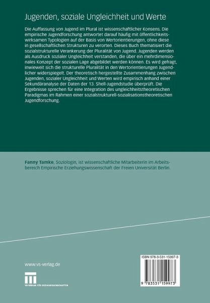 Die Auffassung von Jugend im Plural ist wissenschaftlicher Konsens. Die sozialstrukturelle Verankerung dieser Pluralität wird in diesem Buch thematisiert. Jugenden werden als Ausdruck sozialer Ungleichheit im Jugendalter verstanden, die über ein mehrdimensionales Konzept der sozialen Lage abgebildet werden können. Es wird gefragt, inwieweit sich die strukturelle Pluralität in den Wertorientierungen Jugendlicher widerspiegelt. Der theoretisch hergestellte Zusammenhang zwischen Jugenden, sozialer Ungleichheit und Werten wird empirisch anhand einer Reanalyse der Daten der 13. Shell-Jugendstudie überprüft. Die Ergebnisse sprechen für die Integration des Ungleichheitstheoretischen Paradigmas im Rahmen einer sozialisationstheoretisch-strukturellen Jugendforschung.