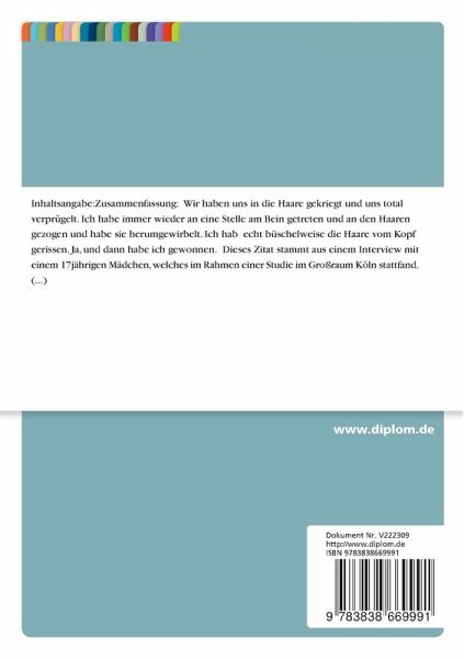 Aufgrund einiger Ergebnisse empirischer Untersuchungen, ist es auch nicht zu bestreiten, dass die Mehrzahl der Täter männlich sind. Der einseitige Blick auf die Jungen verdeckt jedoch den Blick auf die steigende, und nicht verschwindend geringe Zahl weiblicher Täterinnen. Bei einer näheren Beschäftigung mit dem Thema Geschlecht und Jugendgewalt stößt man darauf, dass Mädchen vermehrt körperlich gewalttätige Handlungsstrategien in ihr Verhaltensrepertoire einschließen. Mit dem, als neuartig anzusehenden, Phänomen der körperliche Gewalt ausübenden Mädchen, befasst sich diese Diplomarbeit. Es werden mögliche Verursachungszusammenhänge, die dazu führen, dass Mädchen vermehrt gewaltbereit werden, dargestellt und anschließend daraus resultierende Konsequenzen für die Gewaltpräventionsarbeit erläutert.