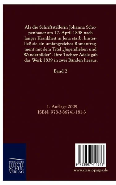 Als die Schriftstellerin Johanna Schopenhauer am 17. April 1838 nach langer Krankheit in Jena starb, hinterließ sie ein umfangreiches Romanfragment mit dem Titel ¿Jugendleben und Wanderbilder¿. Ihre Tochter Adele gab das Werk 1839 in zwei Bänden heraus. Band 2.