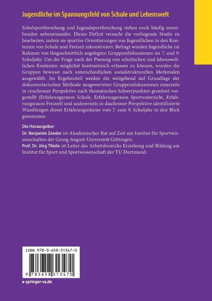 Schulsportforschung und Jugendsportforschung stehen noch häufig unverbunden nebeneinander. Dieses Defizit versucht die vorliegende Studie zu bearbeiten, indem sie sportive Orientierungen von Jugendlichen in den Kontexten von Schule und Freizeit rekonstruiert. Befragt wurden Jugendliche im Rahmen von längsschnittlich angelegten Gruppendiskussionen im 7. und 9. Schuljahr. Um die Frage nach der Passung von schulischen und lebensweltlichen Kontexten möglichst kontrastreich erfassen zu können, wurden die Gruppen bewusst nach unterschiedlichen sozialstrukturellen Merkmalen ausgewählt. Im Ergebnisteil werden die weitgehend auf Grundlage der dokumentarischen Methode ausgewerteten Gruppendiskussionen einerseits in synchroner Perspektive nach thematischen Schwerpunkten geordnet vorgestellt (Erfahrungsraum Schule, Erfahrungsraum Sportunterricht, Erfahrungsraum Freizeit) und andererseits in diachroner Perspektive identifizierte Wandlungen dieser Erfahrungsräume vom 7. zum 9. Schuljahr in denBlickgenommen.
