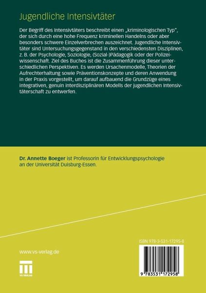 Der Begriff des Intensivtäters beschreibt einen "kriminologischen Typ", der sich durch eine hohe Frequenz kriminellen Handelns oder aber besonders schwere Einzelverbrechen auszeichnet. Jugendliche Intensivtäter sind Untersuchungsgegenstand in den verschiedensten Disziplinen, z.B. der Psychologie, Soziologie, (Sozial-)Pädagogik oder der Polizeiwissenschaft. Ziel des Buches ist die Zusammenführung dieser unterschiedlichen Perspektiven. Es werden Ursachenmodelle, Theorien der Aufrechterhaltung sowie Präventionskonzepte und deren Anwendung in der Praxis vorgestellt, um darauf aufbauend die Grundzüge eines integrativen, genuin interdisziplinären Modells der jugendlichen Intensivtäterschaft zu entwerfen.