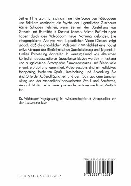 Seit es Filme gibt, hat sich an ihnen die Sorge von Pädagogen und Politikern entzündet, die Psyche der jugendlichen Zuschauer könne Schaden nehmen, wenn sie mit der Darstellung von Gewalt und Brutalität in Kontakt komme. Solche Befürchtungen haben durch den Videoboom neue Nahrung gefunden. Die ethographische Analyse von jugendlichen Video-Cliquen zeigt jedoch, daß die angeblichen "Videoten" in Wirklichkeit eine höchst aktive Gruppe der filmästhetischen Spezialisierung und jugendkulturellen Formierung darstellen. Inweitestgehend von elterlichen Kontrollen abgeschotteten Rezeptionsenklaven werden in lockerer und ausgelassener Atmosphäre Filmkompetenzen und Erlebnisstile erlernt, erprobt und kanonisiert. Video-Sessios sind ein kollektives Happening, bedeuten Spaß, Unterhaltung und Ablenkung. Sie sind Orte der Außeralltäglichkeit und kleine Fluchten aus dem banalen Alltag und der rationalitätsüberwuchernden Schul- und Berufswelt, sie sind letzlich eine neue, postmoderne Form medialer Ventilsitten.