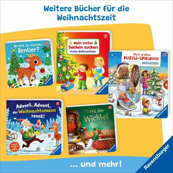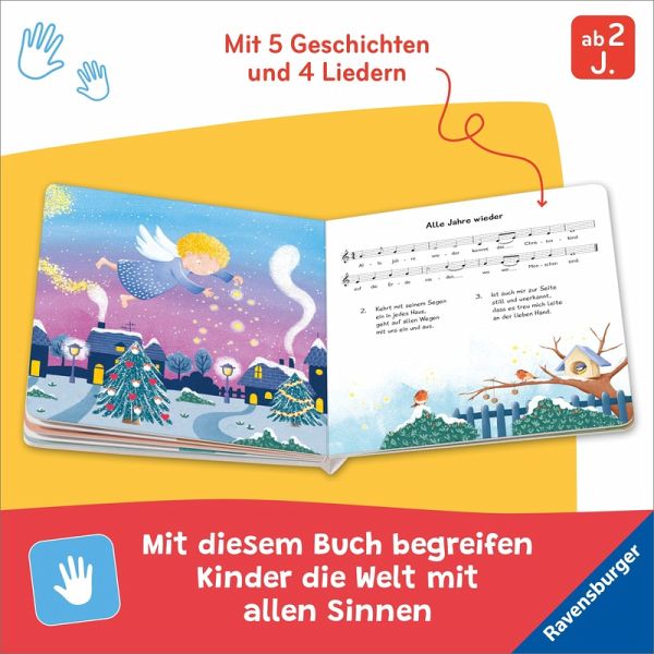 Bald ist Weihnachten! In diesem handlichen und stabilen Pappbilderbuch finden Eltern und Kinder stimmungsvolle Geschichten zum Vorlesen und zusätzlich 4 der schönsten Weihnachtslieder. So wechseln sich kurze Vorlesegeschichten und die Texte der Weihnachtslieder samt Noten ab. Zusammen mit den fröhlichen Illustrationen sorgt dies für langanhaltende Vorfreude auf das Weihnachtsfest bei Groß und Klein.