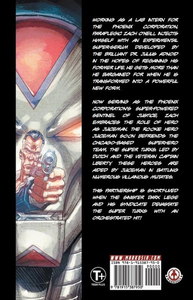 Working as a lab intern for the Phoenix Corporation, paraplegic Zach O'Neill injects himself with an experimental super-serum developed by the brilliant Dr. Julius Adnoid in the hopes of regaining his former life. He gets more than he bargained for when he is transformed into a powerful new form. Now serving as the Phoenix Corporation's super-powered sentinel of justice, Zach embraces the role of hero as Juiceman.