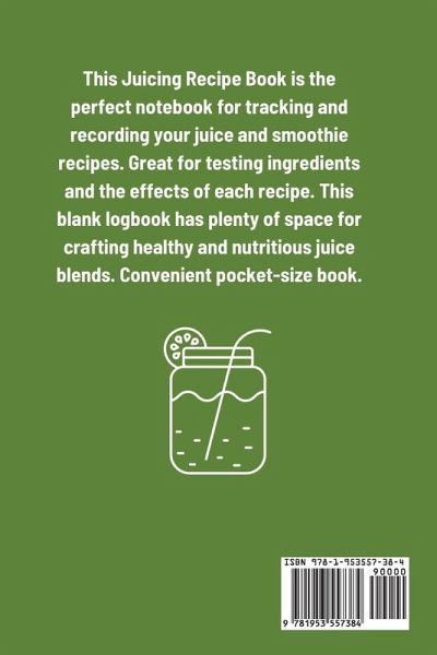 This Juicing Recipe Book is the perfect notebook for tracking and recording your juice and smoothie recipes. Great for testing ingredients and the effects of each recipe. This blank logbook has plenty of space for crafting healthy and nutritious juice blends. Convenient pocket-size book. Features:Shopping List Prep Time Juicing Time Number of Ounces Number Of Servings- list number of servings for recipe This Juicing Is For- checklist for breakfast, lunch, dinner, or healing Ingredients- write down a list of ingredients How To Prepare- write down the process and preparation steps for your recipe How I Felt After Juicing- jot down the effects on your body and health after drinking the juice My Results- checklist for tracking improvements in mood, energy, focus, and weight loss Juice Rating- rate the recipe using a number system 1 through 10 Details:Size: 6" x 9" Pages: 104 Paperback Matte finish Order this book today to help you stay on track with your juicing goals and maintaining your health. Great gift for friends and family who are looking to achieve weight loss and healthy habits.