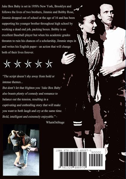 Juke Box Baby is set in 1950's New York, Brooklyn and follows the lives of two brothers, Jimmie and Bobby Rose, Jimmie dropped out of school at the age of 16 and has been supporting his younger brother throughout high school by working a dead end job, packing boxes. Bobby is an excellent Baseball player but when his academic grades threaten to ruin his chances of a scholarship, Jimmie steps in and writes his English paper - an action that will change both of their lives forever. "The script doesn't shy away from bold or intense themes... But dont't let that frighten you 'Juke Box Baby' also boasts plenty of comedy and romance to balance out the tension, resulting in a captivating and enthralling story that will make you want to both laugh and cry at the same time. Bold, intelligent and extremely enjoyable." - WhatsOnStage