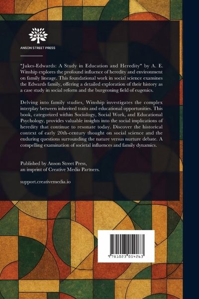 "Jukes-Edwards: A Study in Education and Heredity" by A. E. Winship explores the profound influence of heredity and environment on family lineage. This foundational work in social science examines the Edwards family, offering a detailed exploration of their history as a case study in social reform and the burgeoning field of eugenics. Delving into family studies, Winship investigates the complex interplay between inherited traits and educational opportunities. This book, categorized within Sociology, Social Work, and Educational Psychology, provides valuable insights into the social implications of heredity that continue to resonate today. Discover the historical context of early 20th-century thought on social science and the enduring questions surrounding the nature versus nurture debate. A compelling examination of societal influences and family dynamics. This work has been selected by scholars as being culturally important, and is part of the knowledge base of civilization as we know it. This work is in the public domain in the United States of America, and possibly other nations. Within the United States, you may freely copy and distribute this work, as no entity (individual or corporate) has a copyright on the body of the work. Scholars believe, and we concur, that this work is important enough to be preserved, reproduced, and made generally available to the public. We appreciate your support of the preservation process, and thank you for being an important part of keeping this knowledge alive and relevant.