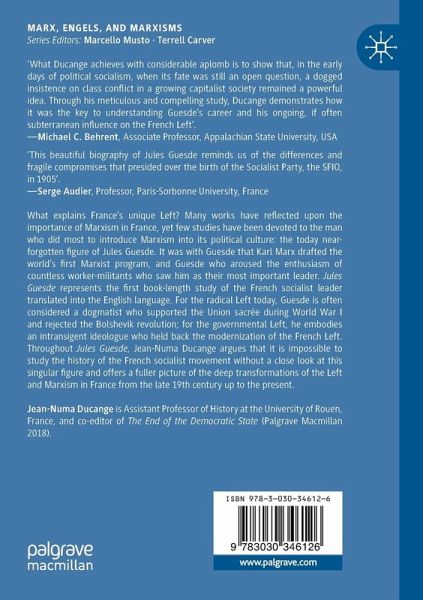 What explains France's unique Left? Many works have reflected upon the importance of Marxism in France, yet few studies have been devoted to the man who did most to introduce Marxism into its political culture: the today near-forgotten figure of Jules Guesde. It was with Guesde that Karl Marx drafted the world's first Marxist program, and Guesde who aroused the enthusiasm of countless worker-militants who saw him as their most important leader. Jules Guesde represents the first book-length study of the French socialist leader translated into the English language. For the radical Left today, Guesde is often considered a dogmatist who supported the Union sacrée during World War I and rejected the Bolshevik revolution; for the governmental Left, he embodies an intransigent ideologue who held back the modernization of the French Left. Throughout Jules Guesde, Jean-Numa Ducange argues that it is impossible to study the history of the French socialist movement without a close look at this singular figure and offers a fuller picture of the deep transformations of the Left and Marxism in France from the late 19th century up to the present.