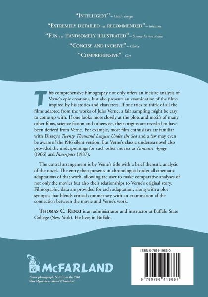 Jules Verne--Voila!--a name that resonates with visions of fantastic adventures and images of exotic exploits. In his voyages extraordinaires, the noted French author fuses his encyclopedic knowledge of science and geography with his ability to tell fascinating tales, taking his readers on unprecedented journeys across the globe, into the earth, and out into space. This revered writer, who with his boundless imagination had hoped to contribute substantially to the world of letters, has surpassed that expectation to become coincidentally a significant influence on film. Jules Verne on Film is both a penetrating analytical overview of Verne's epic novels and a comprehensive filmography of the numerous films inspired by his stories and characters. There are the obvious adaptations that come directly from the pages of Verne's writings, films such as In Search of the Castaways and Mysterious Island. However, looking closely at the plots, characters, and themes of many other films--science fiction and otherwise--one discovers that the incomparable Verne has had a far wider influence on filmmakers than one might have thought. For instance, most of us are familiar with Disney's 20,000 Leagues Under the Sea (1954) and some of us may have even seen the two 1997 television productions. But Verne's classic undersea adventure also provides the underpinnings for such entertaining movies as Fantastic Voyage (1966) and Innerspace (1987). Structurally, Jules Verne on Film begins with a biographical sketch and contains 23 chapters arranged alphabetically according to book title, starting with The Adventures of Captain Hatteras and ending with Voyage Across the Impossible. Each chapter includes a summary and analysis of Verne's story, followed by a chronological treatment of the cinematic adaptations compared to their respective written work. Production credits appear in the film entries, along with plot synopses and thorough critical commentaries.