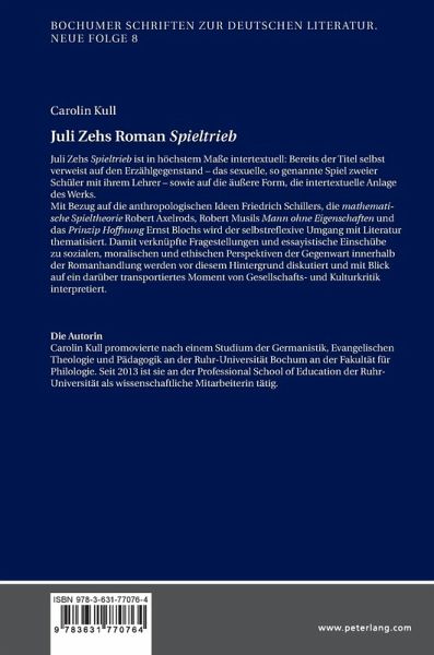 Juli Zehs Spieltrieb ist in höchstem Maße intertextuell: Bereits der Titel selbst verweist auf den Erzählgegenstand - das sexuelle, so genannte Spiel zweier Schüler mit ihrem Lehrer - sowie auf die äußere Form, die intertextuelle Anlage des Werks.