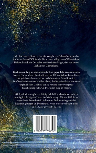 Julie führt das behütete Leben eines englischen Schulmädchens - bis ihr bester Freund Will ihr das Tor zu einer völlig neuen Welt eröffnet: Hidden Island, ein Ort voller märchenhafter Magie, fern von ihrem Zuhause in Cheltenham.Doch von Anfang an scheint sich die Insel gegen Julie verschworen zu haben. Ehe sie allem Übersinnlichen den Rücken kehren kann, bittet der gleichermaßen attraktive und distanzierte Prinz Roderich, künftiger Herrscher von Hidden Island, die Siebzehnjährige um einen unglaublichen Gefallen, der sie vor eine schwerwiegende Entscheidung stellt. Und vor einen Berg an Fragen.Wird Julie dem magischen Königreich helfen, obwohl sie dadurch womöglich ihr eigenes Leben in Gefahr bringt? Könnte Will für sie mehr als ein Freund sein? Und warum fühlt sie sich gerade bei Roderich geborgen und verstanden, wenn er doch vielleicht nicht jener ist, der er vorgibt zu sein?