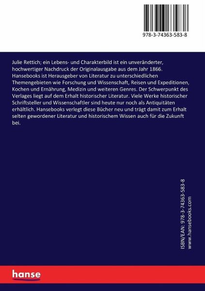 Julie Rettich; ein Lebens- und Charakterbild ist ein unveränderter, hochwertiger Nachdruck der Originalausgabe aus dem Jahr 1866.