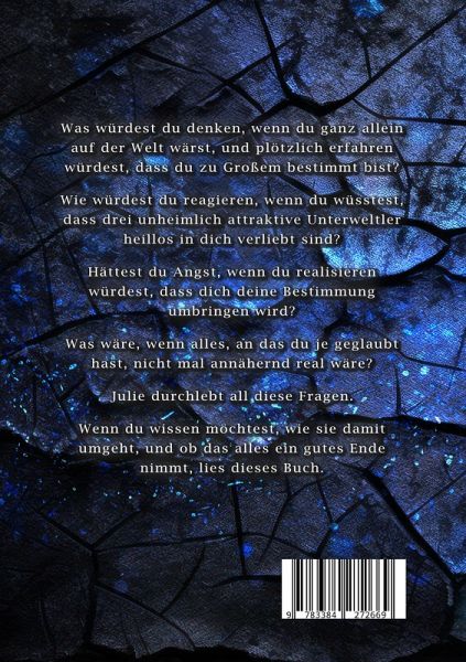 Was würdest du denken, wenn du ganz allein auf der Welt wärst, und plötzlich erfahren würdest, dass du zu Großem bestimmt bist?Wie würdest du reagieren, wenn du wüsstest, dass drei unheimlich attraktive Unterweltler heillos in dich verliebt sind?Hättest du Angst, wenn du realisieren würdest, dass dich deine Bestimmung umbringen wird?Was wäre, wenn alles, an das du je geglaubt hast, nicht mal annähernd real wäre?Julie durchlebt all diese Fragen.Wenn du wissen möchtest, wie sie damit umgeht, und ob das alles ein gutes Ende nimmt, lies dieses Buch.