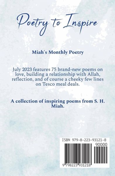 THE MONTHLY POETRY COLLECTION BY S. H. MIAH July 2023 features 75 brand-new poems on love, building a relationship with Allah, reflection, and of course a cheeky few lines on Tesco meal deals. A collection of inspiring poems from S. H. Miah.
