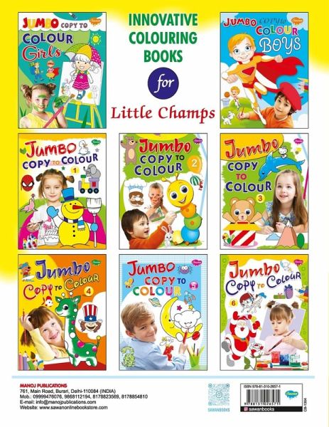 GOWOO presents Jumbo Copy to Colour-4 book for children. The best and highest quality genre fiction and artist monographs in the marketplace today. Colouring is fun. It promotes creativity, helps kids develop skills and even improves concentration. Each Coloring book contains colouring pages pages to keep your young one occupied in a fun-filled activity and learning.