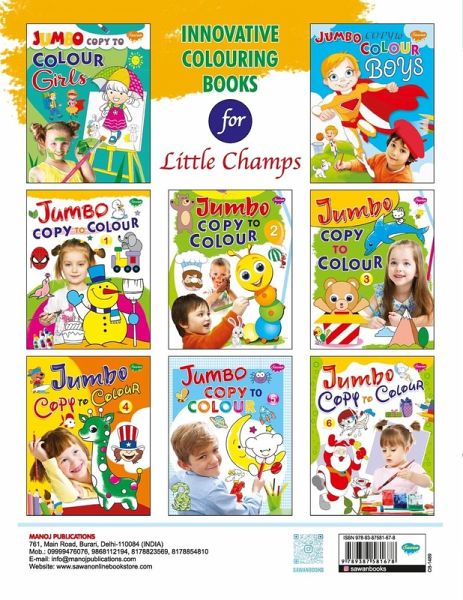 GOWOO presents Jumbo Copy to Colour-Boys book for children. The best and highest quality genre fiction and artist monographs in the marketplace today. Colouring is fun. It promotes creativity, helps kids develop skills and even improves concentration. Each Coloring book contains colouring pages pages to keep your young one occupied in a fun-filled activity and learning.