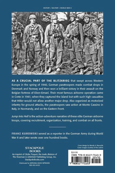 As a crucial part of the blitzkrieg that swept across Western Europe in the spring of 1940, German paratroopers made combat drops in Denmark and Norway and then won a brilliant victory in their assault on the Belgian fortress of Eben-Emael. Their most famous airborne operation came in Crete in 1941 when they captured the island but with such high casualties that Hitler would not allow another major drop. Also organized as motorized infantry for ground attacks, the paratroopers saw action at Monte Cassino in Italy, in Normandy, and on the Eastern Front. Jump into Hell is the action-adventure narrative of these elite German airborne troops, covering recruitment, organization, training, and combat on all fronts.