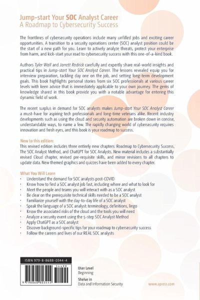 This revised edition includes three entirely new chapters: Roadmap to Cybersecurity Success, The SOC Analyst Method, and ChatGPT for SOC Analysts. In addition, new material includes a substantially revised Cloud chapter, revised pre-requisite skills, and minor revisions to all chapters to update data.