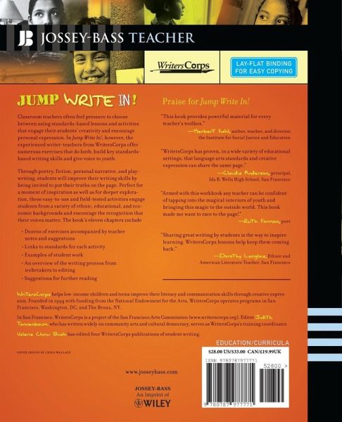 Classroom teachers often feel pressure to choose between using standards-based lessons and activities that engage their students' creativity and encourage personal expression. In Jump Write In!, however, the experienced writer-teachers from WritersCorps offer numerous exercises that do both: build key standards-based writing skills and give voice to youth. Through poetry, fiction, personal narrative, and playwriting, students will improve their writing skills by being invited to put their truths on the page. Perfect for a moment of inspiration as well as for deeper exploration, these easy-to-use and field-tested activities engage students from a variety of ethnic, educational, and economic backgrounds and encourage the recognition that their voices matter. The book's eleven chapters include * Dozens of exercises accompanied by teachernotes and suggestions * Links to standards for each activity * Examples of student work * An overview of the writing process fromicebreakers to editing * Suggestions for further reading Praise for Jump Write In! "This book provides powerful material for everyteacher's toolbox." --Herbert Kohl, author, teacher, and director, the Institute for Social Justice and Education "WritersCorps has proven, in a wide variety of educational settings, that language arts standards and creative expression can share the same page." --Claudia Anderson, principal, Ida B. Wells High School, San Francisco "Armed with this workbook any teacher can be confident of tapping into the magical interiors of youth and bringing this magic to the outside world. This book made me want to race to the page!" --Ruth Forman, poet "Sharing great writing by students is the way to inspire learning. WritersCorps lessons help keep them coming back." --Dorothy Langlois, Ethnic andAmerican Literature Teacher, San Francisco