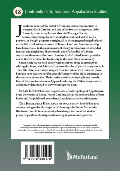 Junaluska is one of the oldest African American communities in western North Carolina and one of the few surviving today. After Emancipation, many former slaves in Watauga County became sharecroppers, were allowed to clear land and to keep a portion, or bought property outright, all in the segregated neighborhood on the hill overlooking the town of Boone, North Carolina. Land and home ownership have been crucial to the survival of this community, whose residents are closely interconnected as extended families and neighbors. Missionized by white Krimmer Mennonites in the early twentieth century, their church is one of a handful of African American Mennonite Brethren churches in the United States, and it provides one of the few avenues for leadership in the local black community. Susan Keefe has worked closely with members of the community in editing this book, which is based on three decades of participatory research. These life history narratives adapted from interviews with residents (born between 1885 and 1993) offer a people's history of the black experience in the southern mountains. Their stories provide a unique glimpse into the lives of African Americans in Appalachia during the 20th century--and a community determined to survive through the next.