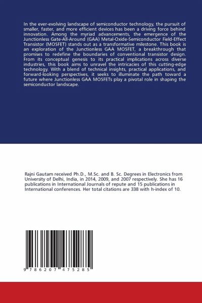 In the ever-evolving landscape of semiconductor technology, the pursuit of smaller, faster, and more efficient devices has been a driving force behind innovation. Among the myriad advancements, the emergence of the Junctionless Gate-All-Around (GAA) Metal-Oxide-Semiconductor Field-Effect Transistor (MOSFET) stands out as a transformative milestone. This book is an exploration of the Junctionless GAA MOSFET, a breakthrough that promises to redefine the boundaries of conventional transistor design. From its conceptual genesis to its practical implications across diverse industries, this book aims to unravel the intricacies of this cutting-edge technology. With a blend of technical insights, practical applications, and forward-looking perspectives, it seeks to illuminate the path toward a future where Junctionless GAA MOSFETs play a pivotal role in shaping the semiconductor landscape.
