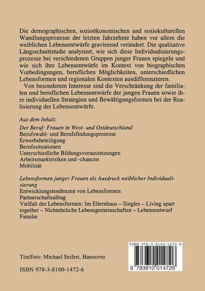 6. Nichteheliche Lebensgemeinschaft . . . . . . . . . . . . . . . . . . . . . . . . . . . . . . . . . . . . . . . . . . . . . . . . . . . 152 6. 1 Nichteheliche Lebensgemeinschaft in Bayern - kein Grund zum Heiraten . . . . . . . . . . . . . . . . . . . . . . . . . . . . . . . . . . . . . . . . . . . . . . . . . . . . . . . . . . . . . . . . . . . . . . . . . . . . . . . . . . . . . . . . . . . . 152 6. 2 Frei und doch gebunden - Nichteheliche Lebensgemeinschaft in Sachsen. . . . . . . . . . . . . . . . . . . . . . . . . . . . . . . . . . . . . . . . . . . . . . . . . . . . . . . . . . . . . . . . . . . . . . . . . . . . . . . . . . . . . . . . 159 6. 3 Zusammenfassung . . . . . . . . . . . . . . . . . . . . . . . . . . . . . . . . . . . . . . . . . . . . . . . . . . . . . . . . . . . . . . . . . . . . . . . . . . . . 165 7. Verheiratete Frauen . . . . . . . . . . . . . . . . . . . . . . . . . . . . . . . . . . . . . . . . . . . . . . . . . . . . . . . . . . . . . . . . . . . . .. . . . 166 7. 1 Verheiratete Frauen in Bayern - Lebensentwurf Familie. . . . . . . . . . . . . . . . 167 7. 2 Ein "geordnetes Leben" - verheiratete Frauen in Sachsen . . . . . . . . . . . . . . 175 7. 3 Zusammenfassung. . . . . . . . . . . . . . . . . . . . . . . . . . . . . . . . . . . . . . . . . . . . . . . . . . . . . . . . . . . . . . . . . . . . . . . . . . . . 181 8. Die Lebensentwürfe der jungen Frauen in Sachsen unter dem Eindruck des politischen und ökonomischen Umbruchs . . . . . . . . . . 182 9. Junge Frauen und ihre Partner: Partnerschaftsalltag und Aushandlungsprozesse in Bayern und Sachsen. . . . . . . . . . . . . . . . . . . . . . . . . . . . . . . . 188 9. 1 Partnerbeziehungen in Bayern . . . . . . . . . . . . . . . . . . . . . . . . . . . . . . . . . . . . . . . . . . . . . . . . . . . . . . . . . 189 9. 2 Partnerbeziehungen in Sachsen. . . . . . . . . . . . . . . . . . . . . . . . . . . . . . . . . . . . . . . . . . . . . . . . . . . . . . . . 198 9. 3 Zusammenfassung und Vergleich Bayern und Sachsen . . . . . . . . . . . . . . . . . . . 203 10. Die Vielfalt der Lebensformen - Zusammenfassung . . . . . . . . . . . . . . . . . . . . . . . . 204 D. Zusammenfassung der Ergebnisse und Schlußfolgerungen. . . . . . . 211 E. Anhang. . . . . . . . . . . . . . . . . . . . . . . . . . . . . . . . . . . . . . . . . . . . . . . . . . . . . . . . . . . . . . . . . . . . . . . . . . . . . . . . . . . . . . . . . . . . 221 Zu Teil A. 3: Regionenbeschreibung . . . . . . . . . . . . . . . . . . . . . . . . . . . . . . . . . . . . . . . . . . . . . . . . . 223 Zu Teil A. 4: Zeittafel DDR . . . . . . . . . . . . . . . . . . . . . . . . . . . . . . . . . . . . . . . . . . . . . . . . . . . . . . . . . . . . . . . . 243 Zu Teil B. : Tabellen zum Beruf . . . . . . . . . . . . . . . . . . . . . . . . . . . . . . . . . . . . . . . . . . . . . . . . . . . . . . . 249 Zu Teil c. : Tabellen zu den Lebensformen . . . . . . . . . . . . . . . . . . . . . . . . . . . . . . . . . . . . . . . 267 F. Literatur . . . . . . . . . . . . . . . . . . . . . . . . . . . . . . . . . . . . . . . . . . . . . . . . . . . . . . . . . . . . . . . . . . . . . . . . . . . . . . . . . . . . . . . . . 277 7 Einführung Mit dem vorliegenden Band legen wir Ergebnisse der ersten und zweiten Er hebungswelle unserer Längsschnittuntersuchung "Entwicklungsprozesse fa milialer und beruflicher Lebenszusammenhänge junger Frauen" vor. Das Projekt wird am Deutschen Jugendinstitut durchgeführt und vom Bundesmi nisterium für Familie, Senioren, Frauen und Jugend noch für einen Untersu chungszeitraum bis 1998 gefördert. Die zentrale Fragestellung des Projekts befaßt sich damit, wie junge Frauen ihr Leben im Rahmen gesellschaftlicher Individualisierungsprozesse und in Auseinandersetzung mit individuellen Handlungsspielräumen sowie regiona len Gelegenheitsstrukturen entwerfen und gestalten.