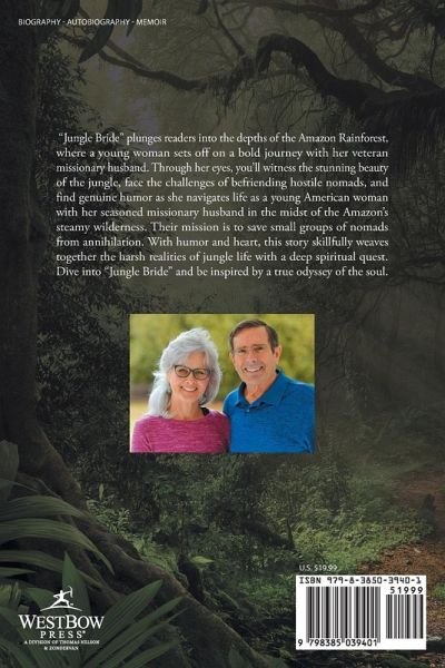 "Jungle Bride" plunges readers into the depths of the Amazon Rainforest, where a young woman sets off on a bold journey with her veteran missionary husband. Through her eyes, you'll witness the stunning beauty of the jungle, face the challenges of befriending hostile nomads, and find genuine humor as she navigates life as a young American woman with her seasoned missionary husband in the midst of the Amazon's steamy wilderness. Their mission is to save small groups of nomads from annihilation. With humor and heart, this story skillfully weaves together the harsh realities of jungle life with a deep spiritual quest. Dive into "Jungle Bride" and be inspired by a true odyssey of the soul.