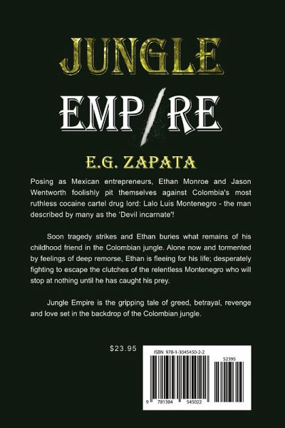 Thrill and adventure with fortune - that is what young Ethan Monroe and his pal Jason Wentworth dream of while on vacation in Peru, South America after meeting a man that boasts to be the cousin of Colombia's drug lord: Lalo Luis Montenegro. Returning to the United States with some smuggled cocaine, the two naïve young men formulate a daring plan. Set in the backdrop of the Colombian jungle, Jungle Empire is the gripping tale of greed, betrayal, revenge and what the love of a woman can arouse from deep within the soul.