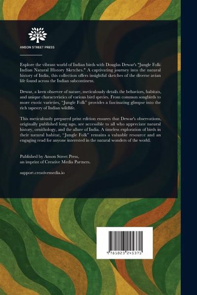 Explore the vibrant world of Indian birds with Douglas Dewar's "Jungle Folk: Indian Natural History Sketches." A captivating journey into the natural history of India, this collection offers insightful sketches of the diverse avian life found across the Indian subcontinent. Dewar, a keen observer of nature, meticulously details the behaviors, habitats, and unique characteristics of various bird species. From common songbirds to more exotic varieties, "Jungle Folk" provides a fascinating glimpse into the rich tapestry of Indian wildlife. This meticulously prepared print edition ensures that…mehr