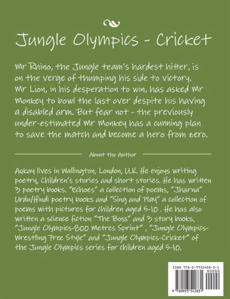 Animals and birds are holding their own Jungle Olympics Games. The Cricketing event, excluded by the humans as an Olympic sport after 1900, has been revived for the Jungle Olympics by order of the Jungle King, Mr Lion, and the test match between the Royal Eleven and the Jungle Eleven is in progress. Mr Rhino, the Jungle team's hardest hitter, is on the verge of thumping his side to victory. Mr Lion, in his desperation to win, has asked Mr Monkey to bowl the last over despite his having a disabled arm. But fear not - the previously under-estimated Mr Monkey has a cunning plan to save the match and become a hero from zero.