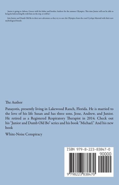 Junior is going to Athens, Greece with his father and brother Andrew for the summer Olympics. This time Junior will not be able to bring his beloved dog Bo with him on the trip, or will he? Join Junior and Dumb Old Bo in their new adventure as they try to save the Olympics from the cruel Cyclops Martoid with their new mythological friends.