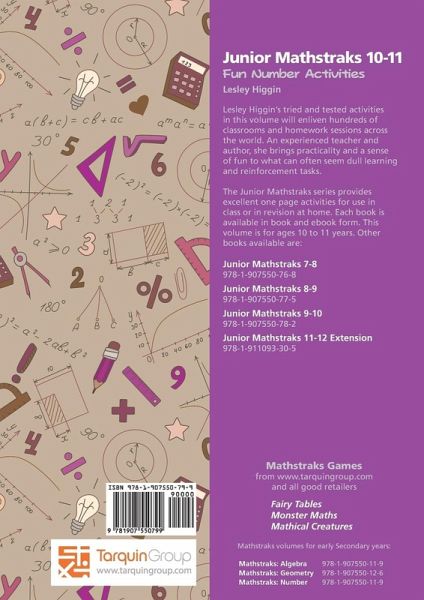 Lesley Higgin's tried and tested activities in this volume will enliven hundreds of classrooms and homework sessions across the world. An experienced teacher and author, she brings practicality and a sense of fun to what can often seem dull learning and reinforcement tasks. The Junior Mathstraks series provides excellent one page activities for use in class or in revision at home. Each book is available in book and ebook form. This volume is for ages 10 to 11 years.