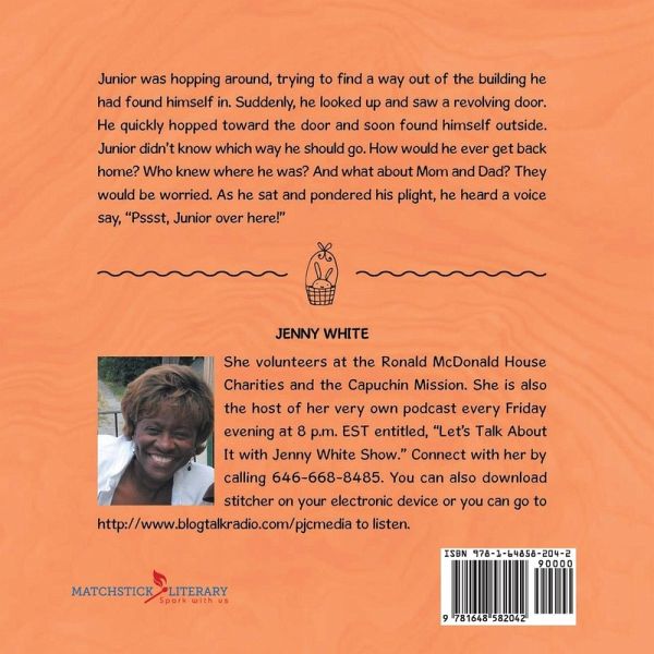 Junior was hopping around, trying to find a way out of the building he had found himself in. Suddenly, he looked up and saw a revolving door. He quickly hopped toward the door and soon found himself outside. Junior didn't know which way he should go. How would he ever get back home? Who knew where he was? And what about Mom and Dad? They would be worried. As he sat and pondered his plight, he heard a voice say, "Pssst, Junior over here!"