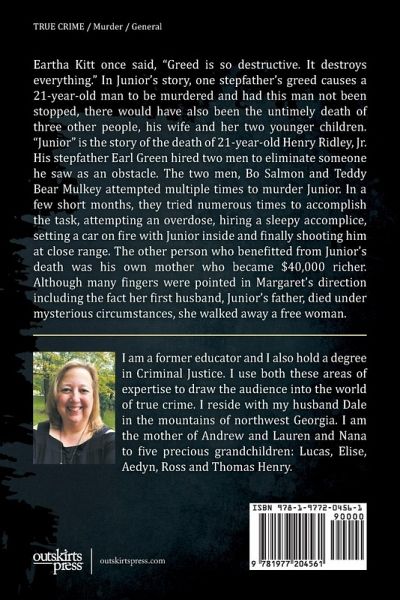 Eartha Kitt once said, "Greed is so destructive. It destroys everything." In Junior's story, one stepfather's greed causes a 21-year-old man to be murdered and had this man not been stopped, there would have also been the untimely death of three other people, his wife and her two younger children. "Junior" is the story of the death of 21-year-old Henry Ridley, Jr. His stepfather Earl Green hired two men to eliminate someone he saw as an obstacle. The two men, Bo Salmon and Teddy Bear Mulkey attempted multiple times to murder Junior. In a few short months, they tried numerous times to accomplish the task, attempting an overdose, hiring a sleepy accomplice, setting a car on fire with Junior inside and finally shooting him at close range. The other person who benefitted from Junior's death was his own mother who became $40,000 richer. Although many fingers were pointed in Margaret's direction including the fact her first husband, Junior's father, died under mysterious circumstances, she walked away a free woman.