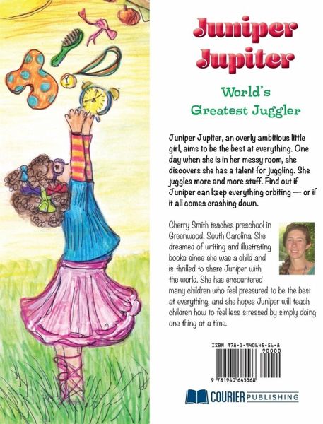 Juniper Jupiter, an overly ambitious little girl, aims to be the best at everything. One day when she is in her messy room, she discovers she has a talent for juggling. She juggles more and more stuff. Find out if Juniper can keep everything orbiting - or if it all comes crashing down. Cherry Smith teaches preschool in Greenwood, South Carolina. She dreamed of writing and illustrating books since she was a child and is thrilled to share Juniper with the world. She has encountered many children who feel pressured to be the best at everything, and she hopes Juniper will teach children how to feel less stressed by simply doing one thing at a time.