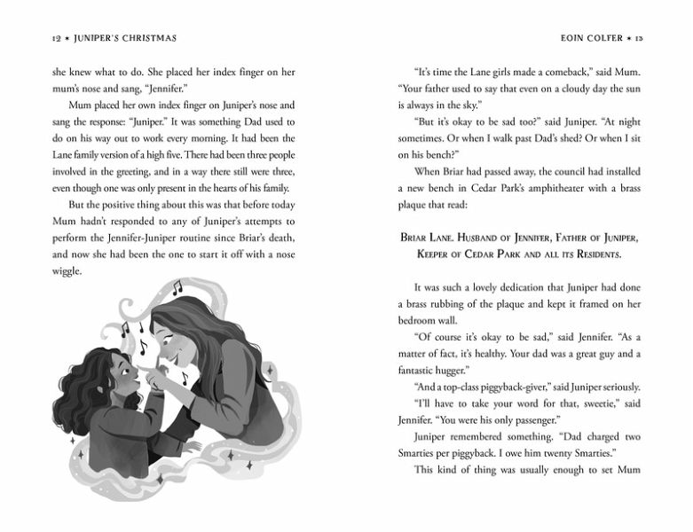 Kirkus Best Book of the Year Kids' Indie Next List Pick New York Times Bestseller Indie Bestseller New York Times Holiday Gift Guide Pick Publisher's Weekly Holiday Gift Guide Pick BookPage Most Anticipated Children's Book Pick Book Riot's 25 Best Christmas Books of All Time From the acclaimed, mega-bestselling Eoin Colfer, author of Artemis Fowl, comes a joyful, heartwarming Christmas classic-in-the-making recommended by the New York Times: "Have no fear: Juniper's Christmas will restore any child's holiday spirit." This season, share this special story with readers of all ages who believe in the power of hope, kindness, and holiday magic. Eleven-year-old Juniper Lane is thrown into a Christmas adventure like no other when she seeks the help of a mysterious woodsman living in her local park, who she suspects is Santa himself, and accidentally gets exposed to North Pole magic. Join a boisterous cast of characters-including a neighbor who always believed in Santa, a young reindeer in training, and a cutthroat crime boss out to steal Santa's magic-on an unpredictable journey bursting with Eoin Colfer's signature exuberance and merriment. Complete with cheerful, festive illustrations, this is a beautifully packaged tale of wonder, sure to delight readers and inspire the Christmas spirit in the whole family. Celebrate the holidays with a story of joy, magic, and saving Santa Claus, from a celebrated author beloved for his spirited storytelling. Juniper's Christmas is the perfect holiday read, year after year.