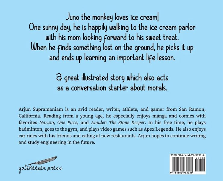 Juno the monkey loves ice cream! One sunny day, he is happily walking to the ice cream parlor with his mom looking forward to his sweet treat. When he finds something lost on the ground, he picks it up and ends up learning an important life lesson. A great illustrated story which also acts as a conversation starter about morals.