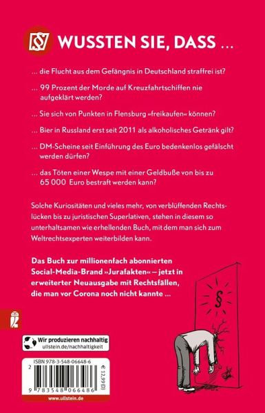 Es ist schon bemerkenswert, was so alles in den Gesetzbüchern dieser Welt steht, welche Urteile mitunter gesprochen wurden und was es generell für kuriose juristische Sachverhalte gibt. Dies und vieles mehr, von verblüffenden Rechtslücken bis zu juristischen Superlativen, steht, kenntnisreich erläutert, in diesem so unterhaltsamen wie erhellenden Handbuch - basierend auf dem Social-Media-Kanal "Jurafakten" mit über 700.000 Abonnenten auf Instagram und Facebook.