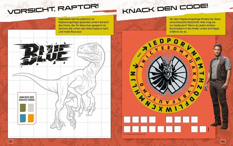 Willkommen in Jurassic World!Auf der Isla Nublar wird es garantiert nie langweilig - komm mit in die faszinierende Welt der Dinosaurier! In diesem Buch gibt es spannende Comics und jede Menge knifflige Rätsel. Entziffere verschlüsselte Botschaften, suche den Weg durchs Dschungellabyrinth und finde heraus, wie gut du den Themenpark und die darin lebenden Dinos kennst.Doch das ist noch nicht alles! Drei actiongeladene Comics warten darauf, dass du sie zu Ende bringst - mit Stickern, Stiften, Schablonen und jeder Menge Fantasie!Inklusive:- 2 Stickerbögen- 1 Schablonenbogen- 1 Bleistift-Topper