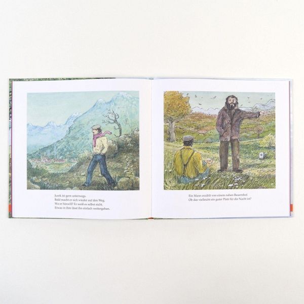 Die bislang unveröffentlichte Geschichte von Jureks Suche nach dem Glück erfüllt eine tiefe Sehnsucht nach Freiheit und einem gelingenden Leben. Jurek geht auf Wanderschaft, schläft unter den Sternen und erfreut sich an der Schönheit der kleinen Dinge. Er schließt sich einem Zirkus an und findet die Liebe. 1987 von Erwin Moser gemalt, hat Heinz Janisch nun poetische Worte zu den verträumten Szenen des Künstlers gefunden.